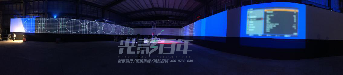 發布會的大屏投影融合系統共使用了25臺16K16000流明高端工程投影機,兩側長度約為40米,中間為20米(總共長約100米),高均為3米的投影展示。兩邊墻面屏幕各用了9臺投影機,中間使用了5臺,地面使用2臺,融合使用了25通道。