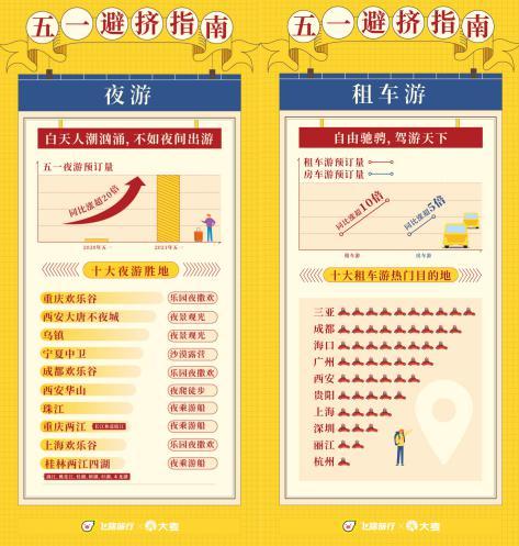 飛豬數(shù)據(jù)顯示今年的旅游成本同比較高,主要是出行交通費用上升,尤其是機票明顯價格上漲幅度偏高,所以避開熱門出港機場能夠有效降低出行成本,想比往年日間游玩的火爆,今年的夜游更受大家青睞,數(shù)據(jù)顯示五一夜游商品預(yù)訂量同比大漲超 20 倍,夜景觀光、夜游乘船、星空露營和主題樂園夜場撒歡成為年輕人夜游主選項。西安大唐不夜城、烏鎮(zhèn)、珠江、重慶兩江和桂林”兩江四湖”、寧夏沙漠等夜游勝地受歡迎。