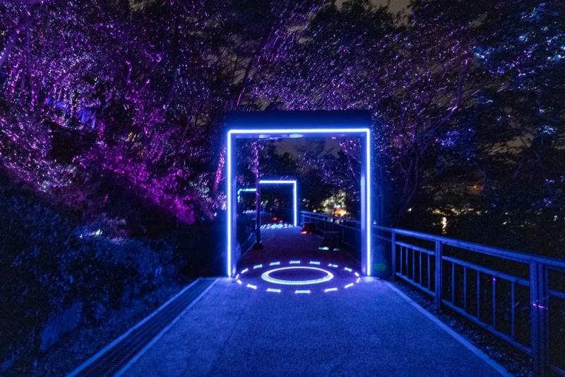 整個沉浸式夜游項目一共有十五個主題空間,包括光網、神秘瀑布、老山茶花、秘密工坊、圖畫之海、和閃閃發光的森林等,其中運用到各類景觀照明、全息投影、3D投影、激光等技術,打造了以“尋找消失的壁畫”為各個主題,游客需要通過線索去追尋消失的壁畫,而守護在這里的吉祥物Pirang會一起幫助游客介紹旅程,帶領游客在尋找的途中開啟一場神秘的光影沉浸之旅。
