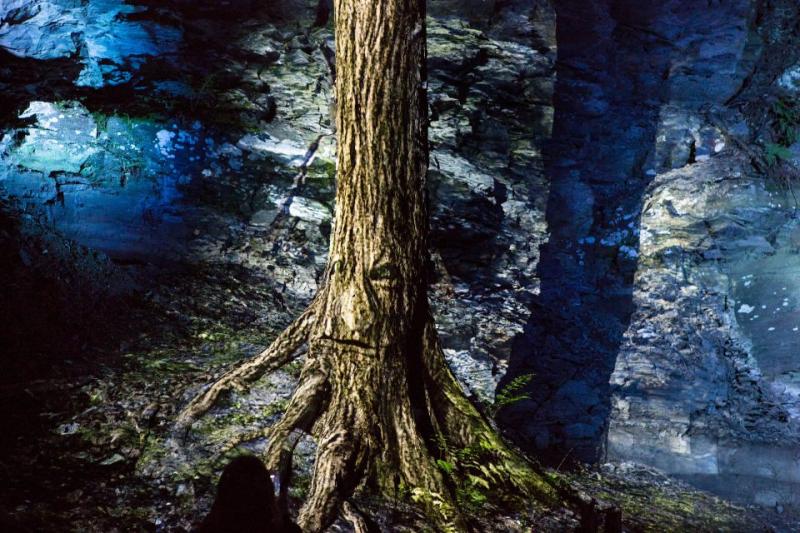 一條穿過森林的燈火通明的夜間步行道在Moment Factory手中創(chuàng)作了出來,當(dāng)夏季夜幕降臨,游客們被邀請?zhí)剿饕粭l蜿蜒2公里穿過樹林的小徑。當(dāng)他們穿過神秘的森林時,游客會遇到受該地區(qū)神話傳說中的人物,他們將他們帶入身臨其境的冒險中。結(jié)合投影和燈光的場景設(shè)計伴隨著空靈的配樂,帶來無與倫比的沉浸式體驗(yàn)。Moment Factory 團(tuán)隊(duì)定制了整個體驗(yàn),包括類似于古代手稿的穿孔金屬板、設(shè)計成仙女的照明裝置、自然元素的視頻映射等等,多媒體裝置與周圍環(huán)境無縫融合,營造出無所不包的魔幻感。