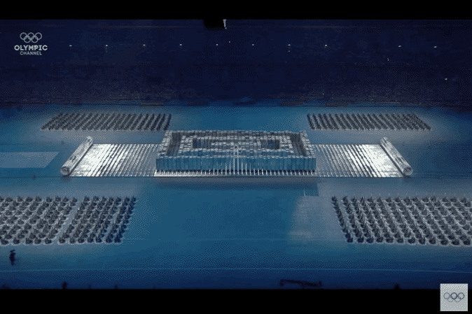 二零零八年八月八日晚上八點,伴隨著一道絢麗的焰火從高中落下,代表著我國傳統文化的內涵的日冕被激活,而日冕又點亮了整個鳥巢,2008個古鐘組成的矩形瓦陣也被點亮,隨著一位樂手高歌吟誦“有朋自遠方來不亦樂乎”歡迎世界各地來賓的同時,各國友人跟隨者矩陣的倒計時一起高喊著5、4、3、2、1,在響徹云霄的歡呼聲中,北京奧運會正式拉開序幕。