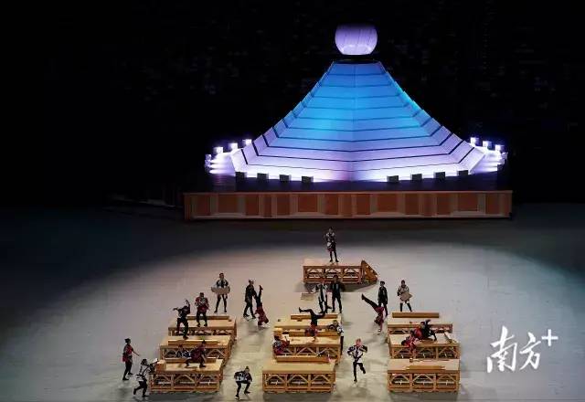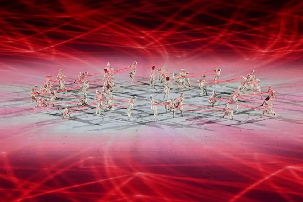 開幕式上的“舞踏”表演《wassai》,多媒體數字創意打造出虛實結合的沉浸式舞臺。“據稱,這個節目意在以舞蹈的形式,表達了人類的誕生,我們看到的這些不同的造型設計,其實是在演繹不同自然元素共存于整個世界。