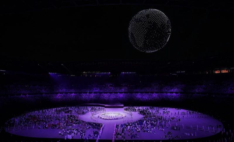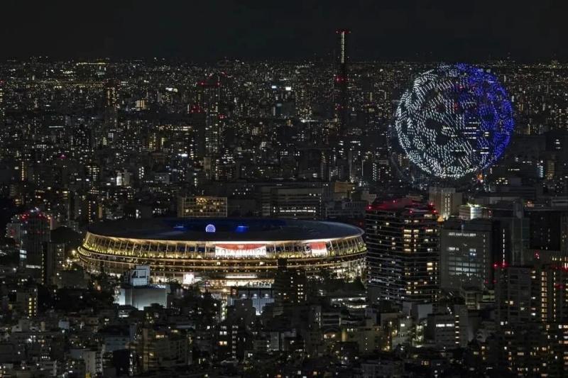1824架無人機組成了2020東京奧運會的會徽,并與場地中央的會徽遙相呼應,科技感十足。