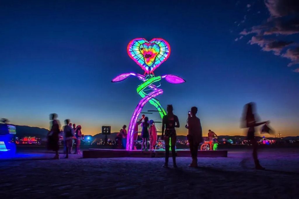 這是一個20英尺的雕塑裝置,雕塑中創造了一個戀愛空間,夜晚還會亮燈,非常絢麗,通過這個很溫暖藝術裝置,希望讓大家珍惜找到的幸福。在這里,會有有許多情侶游客在藝術裝置里面合影求愛,時不時會驚現各種浪漫的場景。