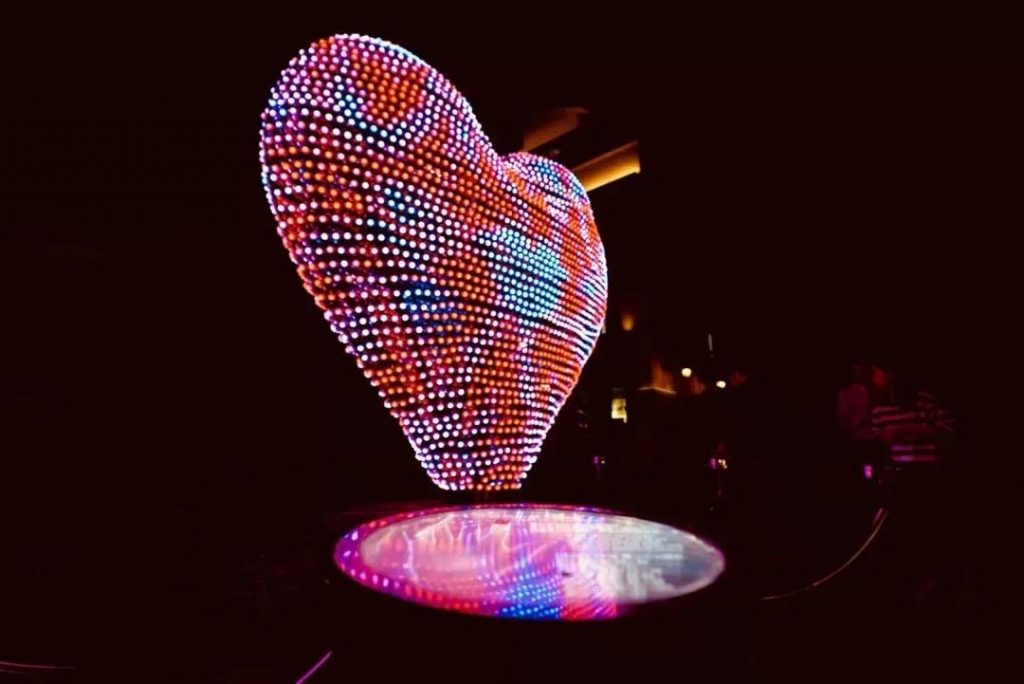 這款《和諧的心跳》互動燈光藝術裝置由法國新媒體藝術家組合LLND打造。這個超過5米的巨大心臟形裝置,環繞四周編排了觸控LED顯示器,內置心跳傳感器,可以監測心率。