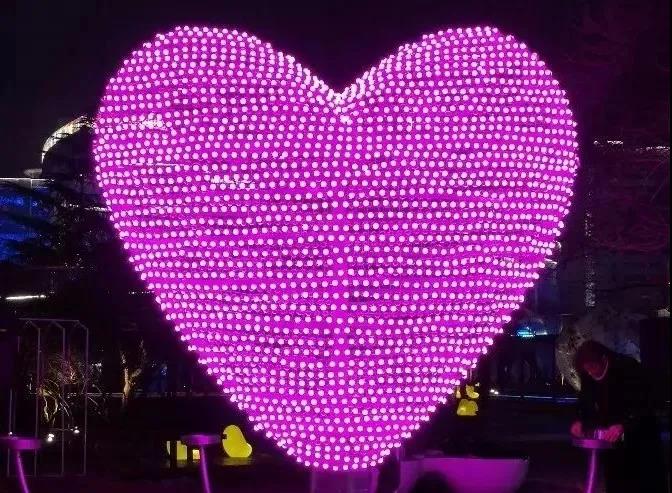 為慶祝情人節,來自丹麥的創意公司設計了心形互動裝置藝術裝置,它高10英尺,由400根透明的亞克力管內嵌led燈形成一個在風中搖曳跳動的紅心,當人們觸摸心形雕塑一旁的傳感器,心就會變的更加亮。