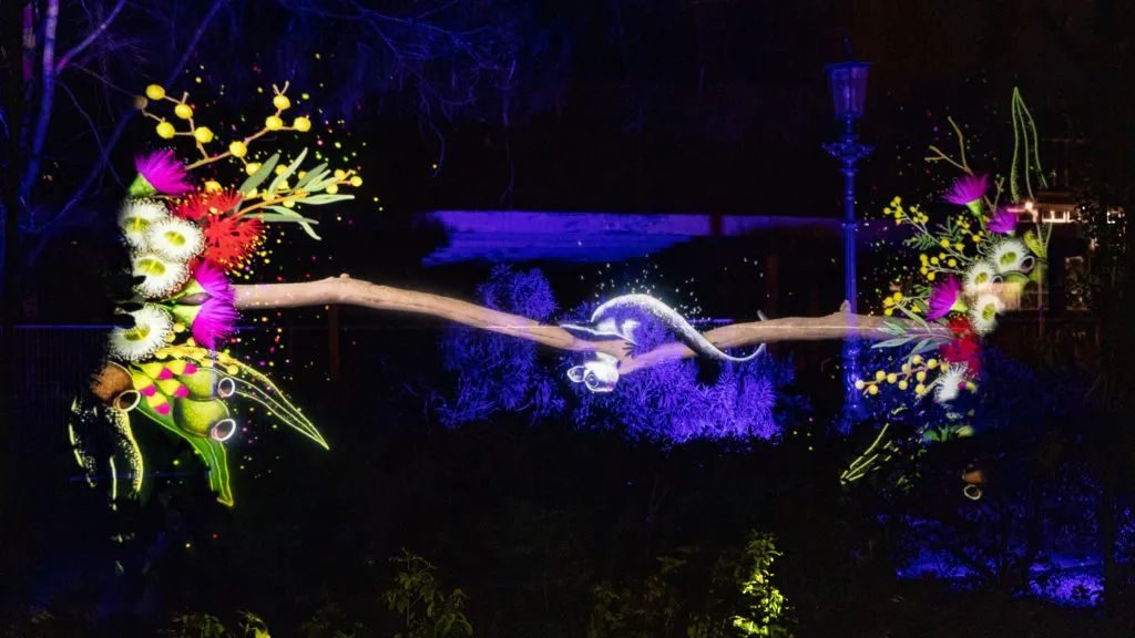 “園藝遺產(chǎn)”和“植物群與動(dòng)物群”,充分體現(xiàn)了羅莎琳德公園擁有豐富的園林寶藏,在這里游客能看到開(kāi)花的桉樹(shù),和本土動(dòng)物雨燕鸚鵡和糖滑翔機(jī),甚至能看到19世紀(jì)的的樹(shù)木活了過(guò)來(lái),與游客講述著古老的故事;“星光”和“南極光”則能讓人感受天空的寧?kù)o,不僅能看到靜謐的星空,也能看到原本處于兩級(jí)的極光,當(dāng)夜空中出現(xiàn)迷人的極光時(shí),誰(shuí)又能不被它的魅力征服呢?此外也有“藝術(shù)場(chǎng)景”和“挖掘記憶”,回顧本迪戈藝術(shù)館的繁榮,以及本迪戈的淘金時(shí)代。