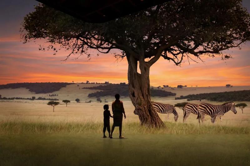 主題體驗館是一個約743.33平米的沉浸式裸眼3D空間,以在南非、肯帝亞等地實拍的野生動物內容為素材,帶領觀眾進入一個真實的動物世界;巨大屏幕、8k的視頻,配合嗅覺、味覺和觸覺的互動,空間內有觸覺系統,當游客走動時地面也會留下腳印,當動物奔騰時也能感受到地面的震動;甚至游客靠近樹時鳥兒會四散而開,擺動手臂能揮散掉空中的灰塵,深呼吸時也能聞到草原的塵土和枯草的味道,這些足以讓游客全身心體驗非洲野生自然的氣息。
