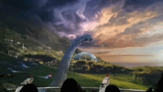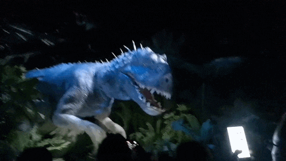 環球影城其他地方都有侏羅紀公園的園區,但北京環影是首次選用侏羅紀世紀電影為主題背景,以藍色系為主,通過數字多媒體投影技術,生生將整座主題區原版復刻成侏羅紀世界努布拉島的場景,恐龍仿佛就在眼前。
