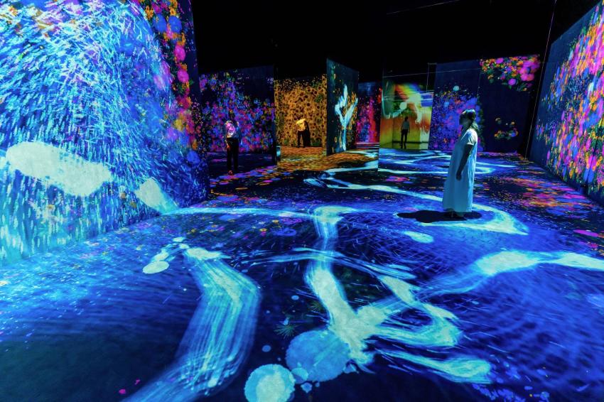 現代的美術館通常需要參觀者平衡自己的興趣與渴望,是側重于把短期展等特別展覽當成與朋友或陌生人共享的社交活動這樣一種興趣,或是側重于作為個體的人來思考和審視藝術的渴望。在teamLab的Continuity藝術展中,沉浸式藝術作品會相互影響,還能與空間中的人也產生交互反應,使他人的存在成為體驗中既基礎又積極部分。人們可以有意識地進行探索,發現并與他人一起創造新世界。