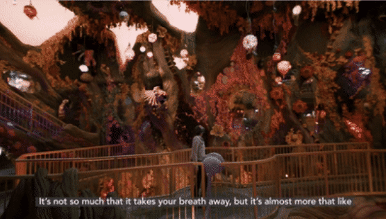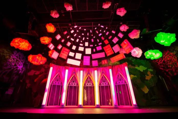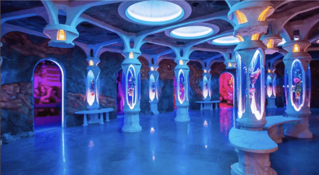緊接著,游客來到一座33英尺高的哥特式“大教堂”“Eenia”前,通過數(shù)字創(chuàng)意影像打造的彩色玻璃花窗讓你置身于七彩萬花筒中;打開這個教堂的大門,仿佛穿越回到14世紀的歐洲世界。