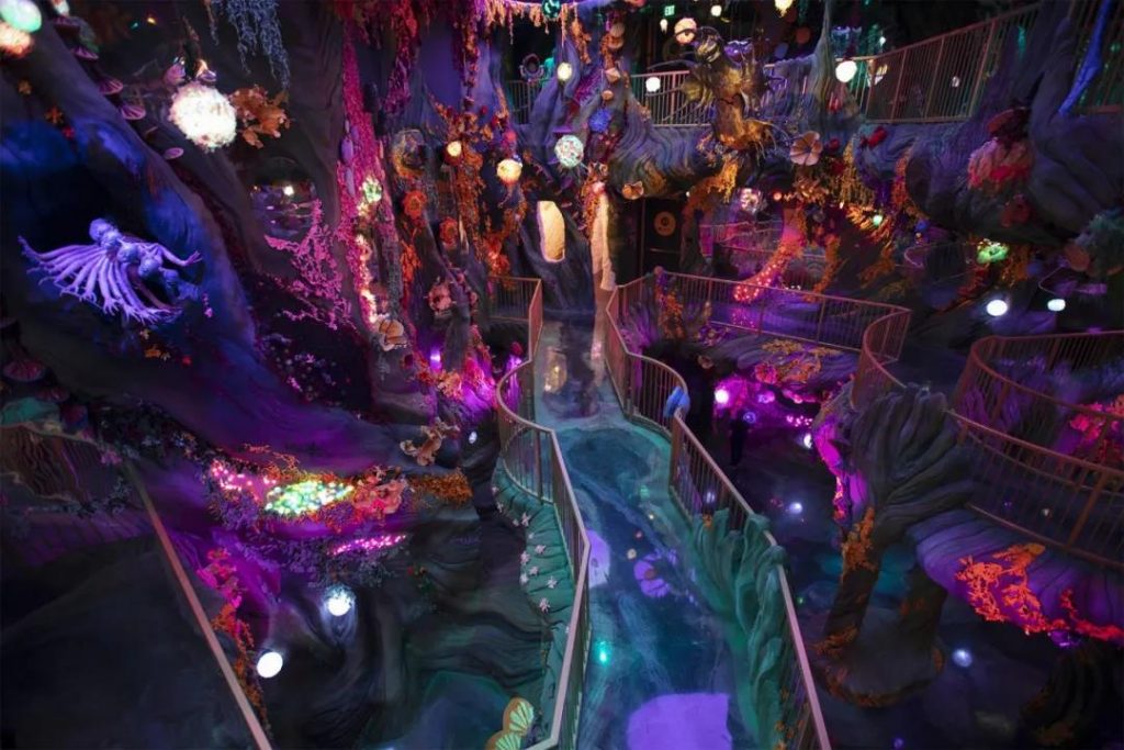 沉浸式互動體驗能夠讓體驗者身臨其境于作品的世界,通過新媒體裝置、數(shù)字光影藝術(shù)等讓人與作品產(chǎn)生互動,使空間充滿魔幻互動趣味,賦予空間展示全方位創(chuàng)意新體驗。
