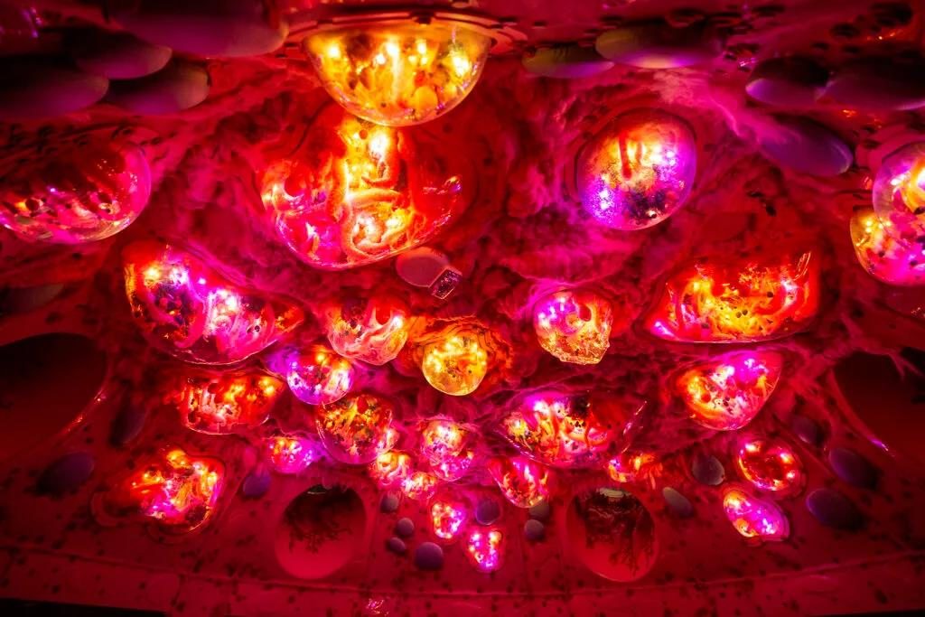 “Numina”如此獨特龐大和多樣化。有些花的靈感來自水母,而有些水母看起來更像花。手工打造裝置項目證明了團隊對細節(jié)的偏愛,以及將看似不同的材料融合成具有各種顏色、紋理和形狀的超現(xiàn)實主義裝置的能力。