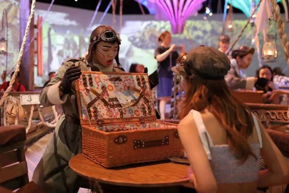 玩味探險(xiǎn)家是一個(gè)90分鐘的單空間戲劇餐飲項(xiàng)目,原版引進(jìn)于英國先鋒創(chuàng)意團(tuán)隊(duì)Gingerline,單場容量約100人,將菜肴與綜合表演藝術(shù)有機(jī)融合,觀眾將在劇情推進(jìn)下,品嘗美食,加入互動(dòng),創(chuàng)意融合舞蹈表演、肢體劇、默劇、多媒體動(dòng)畫、裝置藝術(shù)、即興互動(dòng)與新奇料理。2018年至2019年間于倫敦展演的《The Grand Expedition》,演出在英國好評(píng)如潮,而最近該沉浸式美食互動(dòng)劇已經(jīng)在上海興業(yè)太古匯落地,全新的觀劇方式讓觀眾體驗(yàn)視覺和味蕾的雙重美感。