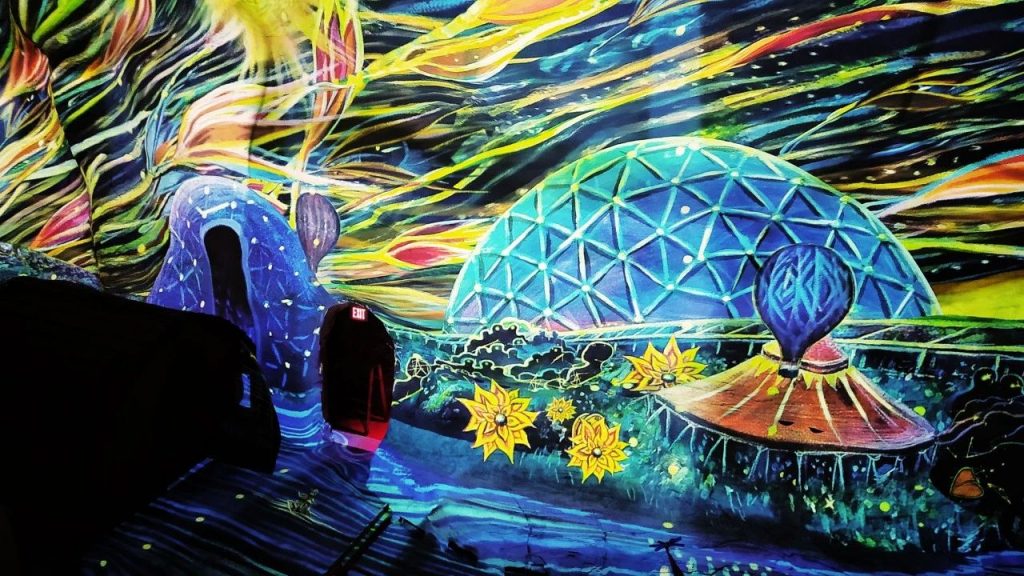 這個90,000平方英尺(8361平方米),可容納488人的四層場地為體驗空間,展出了多位藝術家的79件極具超現實主義科幻主題的展覽作品。