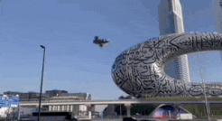 隨后,博物館機械又靈活地開放表面結(jié)構(gòu),飛行器穿梭而入、穩(wěn)穩(wěn)降落,就像《銀翼殺手 2049》里的情節(jié)。