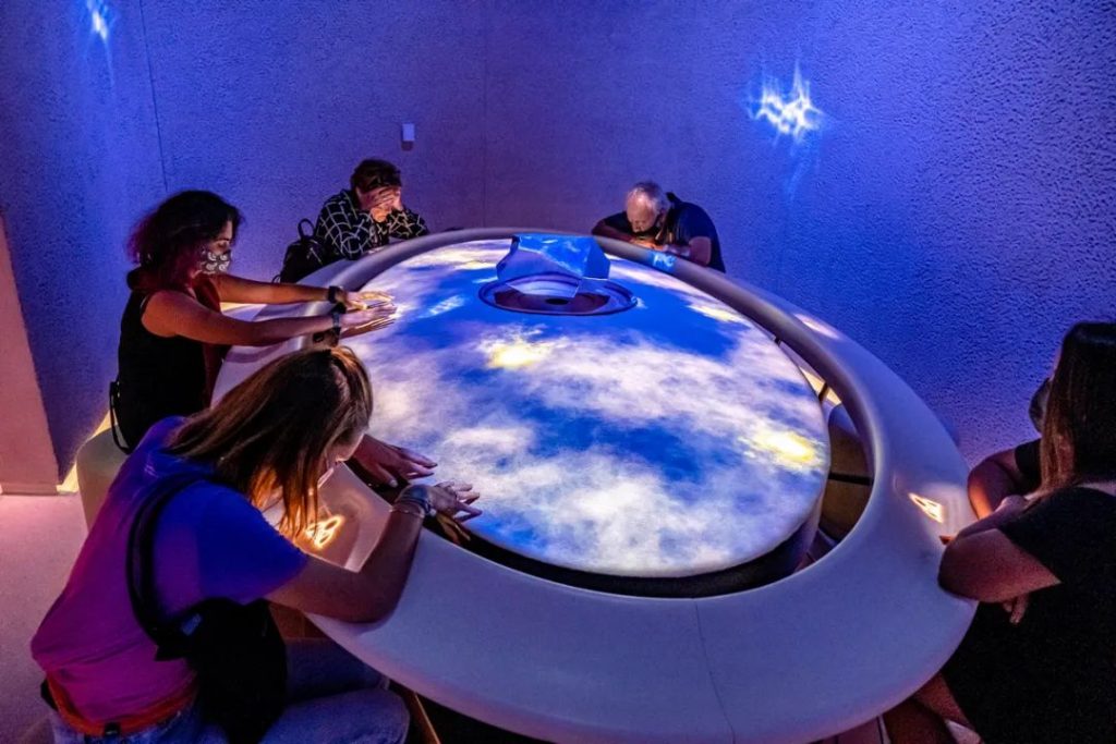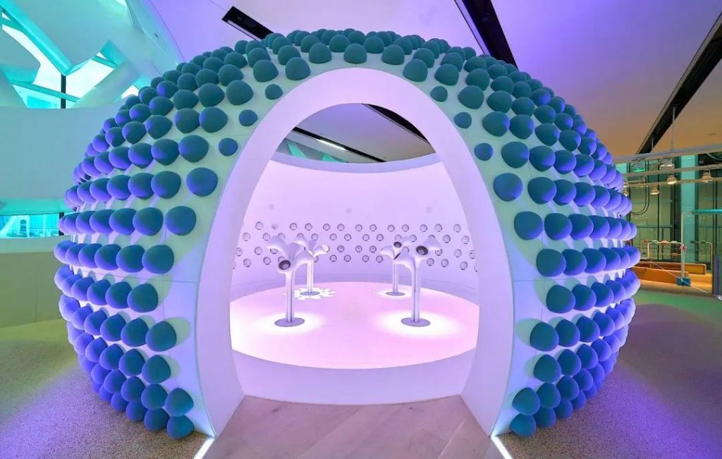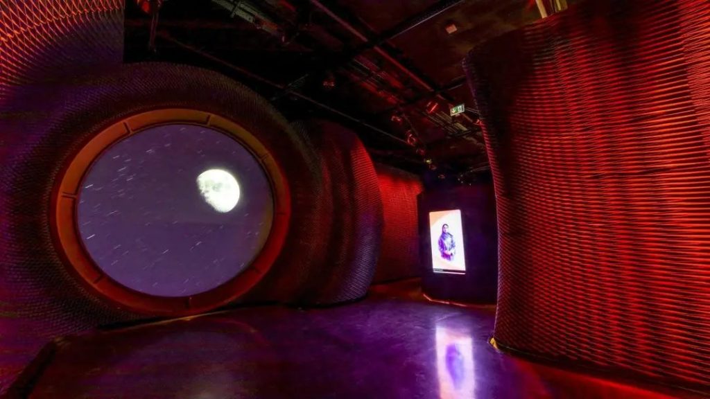 這里通過數(shù)字創(chuàng)意科技模擬了真實太空之旅的場景和體驗,配合虛擬現(xiàn)實技術(shù),當你凝視窗外,仿佛真的置身銀河之中。