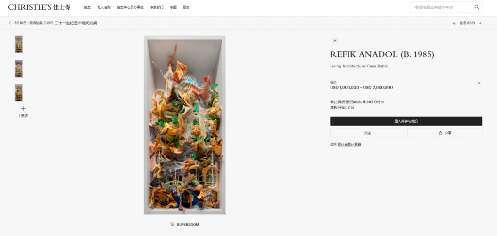 為了呼應(yīng)在美國(guó)的NFT數(shù)字藝術(shù)版權(quán)拍賣,西班牙巴特羅之家聯(lián)合Refik Anadol,于西班牙時(shí)間5月7日-5月15日晚21:00點(diǎn)到23:30之間。