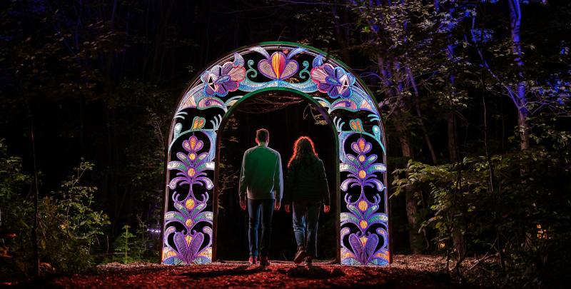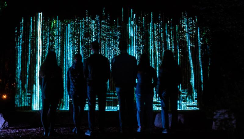 生活在寒冷的加拿大東北部的母系氏族Wendake稱自己是狼族人。作為加拿大土著,他們世代以打獵為生,在這片神秘的土地上,Wendake文化被很好地保留下來。Onhwa’ Lumina 夜游讓這里的文化綻放光芒,讓前來這里的游客感受到人類最早的淳樸生活方式,理解Wendake人熱愛自然,尊重自然,順應自然。Moment Factory深受傳統習俗和祖傳生活方式的啟發,通過其創始符號、傳統和儀式,在 1.2 公里的森林小徑上,民族音樂和舞蹈的精髓始終存在。七個沉浸式多媒體區,裝置包括燈光設計、視頻投影、場景設計和原聲帶,照亮 Huron-Wendat 民族的文化和遺產。