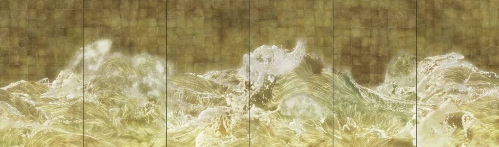 世界上所有的海洋是連在一起的,所以所有的波浪也是互相串聯的。東亞古典藝術中的波浪往往是由成組的線條來表現的。一系列線條組成的波浪提醒著我們,它們是流動的一部分。而在這些線條之中,波浪就仿佛是活物一般,能讓人感受到生命。事實上,當波浪翻涌而起時,你會感覺到一股強烈的生命氣息,仿佛生命在綻放出花朵,每一朵波浪里似乎都蘊藏著生命。但波浪崩落消失時,又如花朵凋零般短暫易逝,同時你會注意到原來它們都是海洋的一部分。而那片海與所有的海洋相連,也就是說,世界上所有的波浪也都是相連的。波浪之所以像生命,是因為生命本就像是強大的、翻涌而起的波浪。生命源起于所有連在一起的海洋,是一種從未間斷、持續翻涌而起的奇跡般的現象。