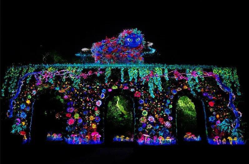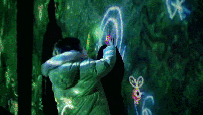 在月球沙漠開出了美麗的花朵,燈光藝術裝置和互動投影結合的藝術場景,希望月神村的森林變得富饒,人們一直安居樂業。