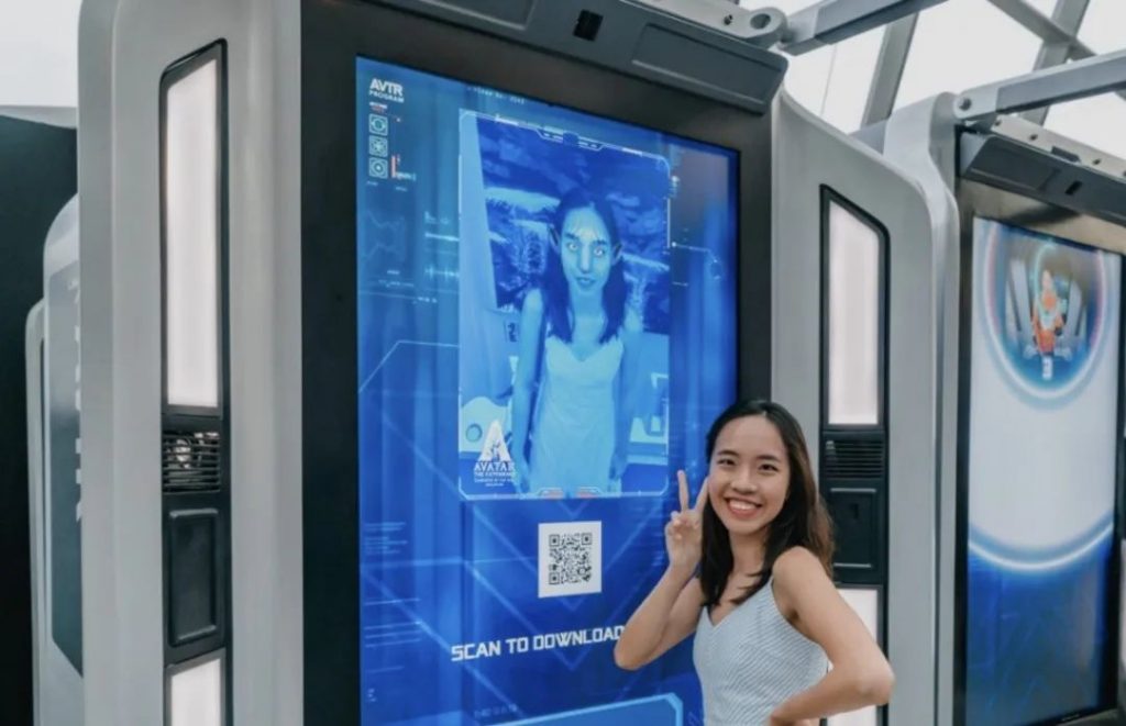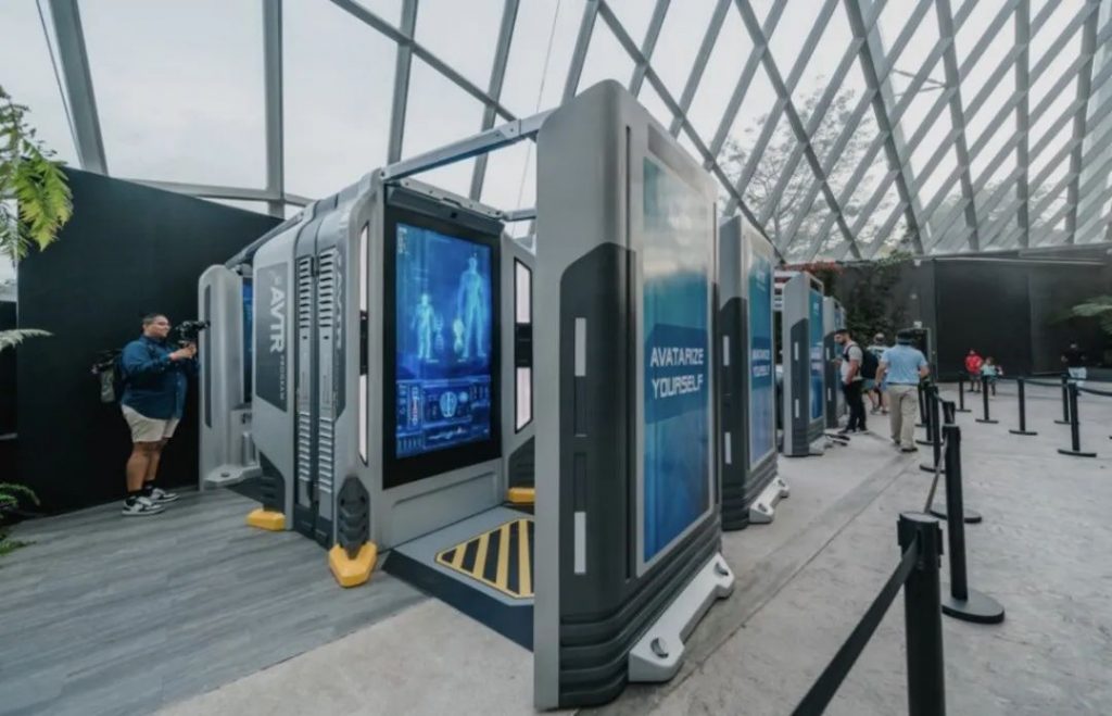 在展區設有約十臺生物機艙,讓參觀者可以免費變身(“Avatarize Yourself”),看看自己變成電影中納美人(Na’vi)的模樣。這些影像還能通過掃QR碼下載,可免費發到自己的社交媒體。
