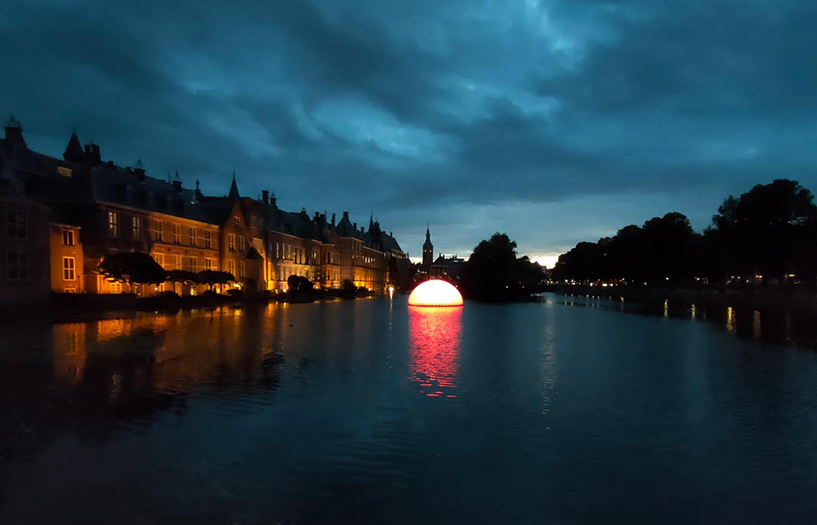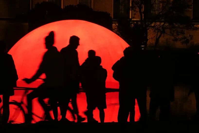 裝置由 Mike Rijnierse 和 Ludmila Rodrigues 設計,靈感來自電影和繪畫中對日落的描繪。一個巨大的充氣太陽,在白天和夜晚發(fā)出充滿活力的紅光。