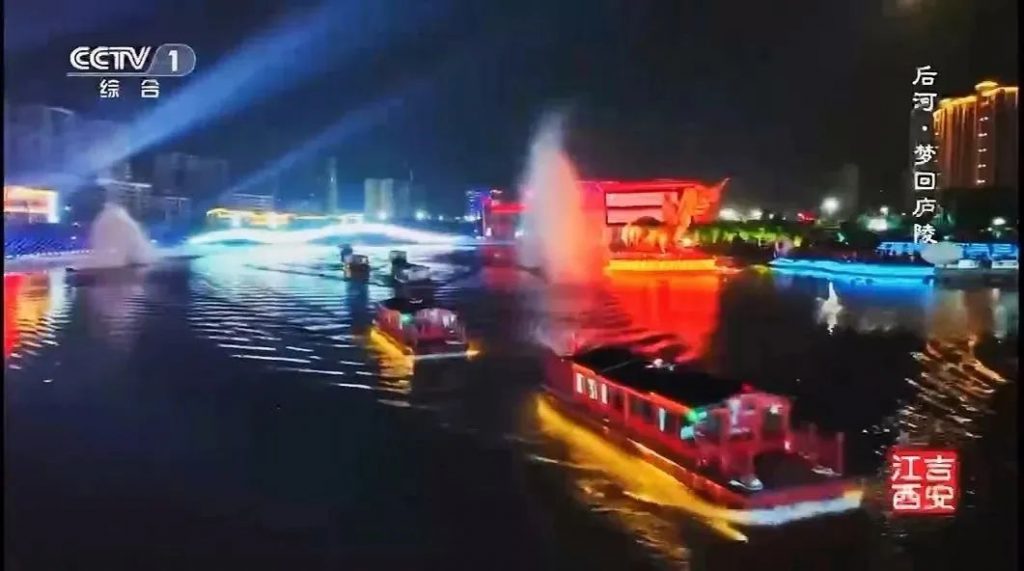 吉安后河·夢回廬陵景區以“廬陵文化”為主題,借助數字創意媒介,融合城市內河的自然與特色地域,將廬陵文化融入實景融入演藝融入科技融入創意,呈現一幅聚焦廬陵最美瞬間的特色文化大美畫卷。光影游船項目、常態化演出、多元業態等旅游資源為市民游客帶來創新玩法、潮流體驗。