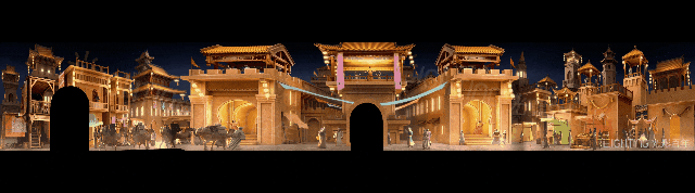 伴隨著駝鈴聲響,走進一座東西融合的絲路市集。絡繹不絕的商隊、載歌載舞的樂團、求取佛經的僧人穿行在這條走廊上,展現出商貿往來、民族交融、藝術交流的盛景。