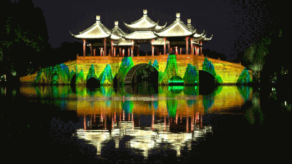 “煙花三月、春江花月、商胡云集、云想霓裳、二分明月”等,十大圍繞唐詩主題展開的劇情節點,叢林全息詩畫卷、沿途行浸賦詩演藝、行舟小橋流水、全息飛瀑對酒當歌、云霧繚繞五亭橋、裸眼3D商胡云集、AR體驗互動融入、花車花船競彩巡游、孔明燈下水幕大秀、夜市千燈照碧云,等眾多意境場景及應用,將景區各大主要景觀景點映入畫卷,展開一副穿越千年的光影詩畫,領略大唐時代中的“天下之盛,揚為首”。