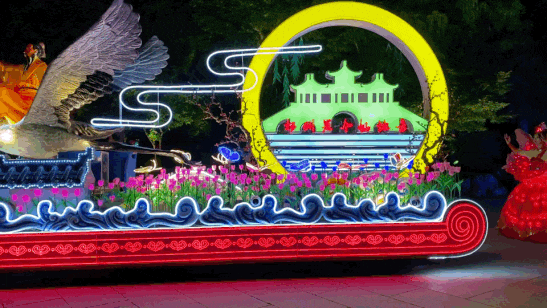 首創陸上花車、水上花船雙巡游;花船穿梭,花車競彩,方才足夠展現大唐揚州盛世中的“千燈不夜城”