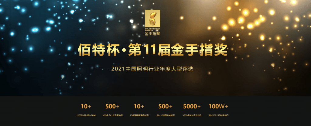 “金手指獎”是由中國照明網(wǎng)創(chuàng)設(shè)的中國照明行業(yè)首個綜合性大獎,是照明行業(yè)最具影響力和權(quán)威性的獎項之一。自2011年創(chuàng)辦以來,已成功舉辦十屆,建立了成熟的評選體系。由其堅持“公平、公正、公開”透明的原則,依靠著強大的評委陣容,不斷革新的評審體系,奠定了金手指獎的行業(yè)高度。在專家學(xué)者的指導(dǎo)下促進了自身發(fā)展的同時,更實現(xiàn)了照明行業(yè)整體的共同進步。