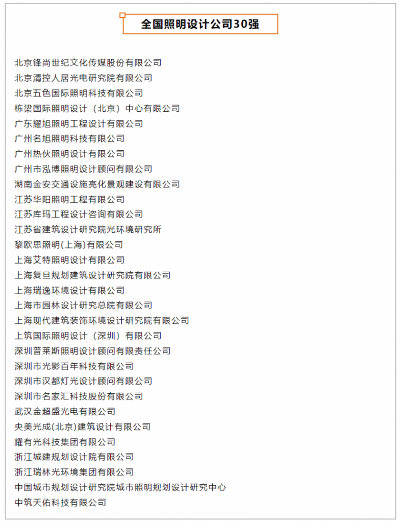 此次光影百年在專業(yè)終審評委組的推薦下,榮幸入選并通過公示獲得“全國照明設(shè)計公司30強”獎項。